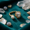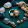 Celebrate the unique beauty of the sea with this striking bypass ring. At one end sits a majestic, irregularly shaped baroque pearl, cradled in a textured “coral-like” gold setting. The other end balances the design with a smooth, symmetrical round pearl topped with a crown of sparkling accents. Set on a polished gold-toned band, this piece is a conversation starter that bridges the gap between raw nature and refined luxury.