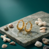 Elegant 18k gold-plated hoops featuring a unique, scalloped texture reminiscent of a seashell. Perfect for adding a touch of coastal sophistication to your everyday look.