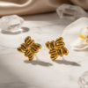 Elevate your everyday look with these sophisticated, 14k gold-plated sculptural studs. Featuring a unique interwoven “love knot” design with a high-shine ribbed finish, these earrings offer a bold, architectural statement while remaining lightweight enough for all-day wear. The perfect blend of vintage charm and modern luxury.