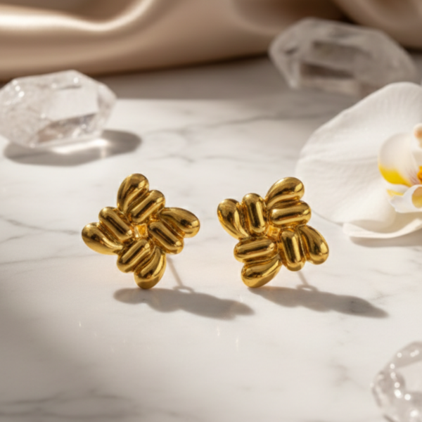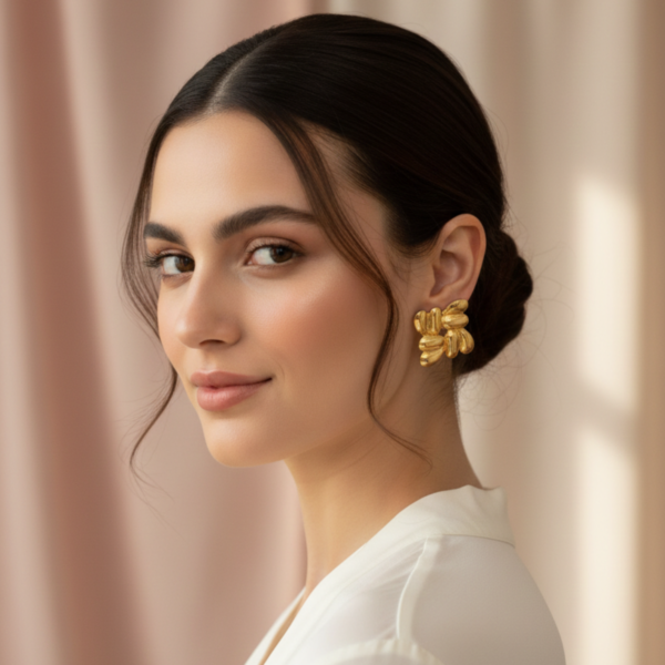Make a statement without saying a word. Our Interwoven Ribbed Gold Studs are designed for the woman who appreciates the intersection of art and fashion. Inspired by mid-century brutalist jewelry, these earrings feature a complex, four-point knot motif that adds immediate texture and dimension to your profile.