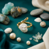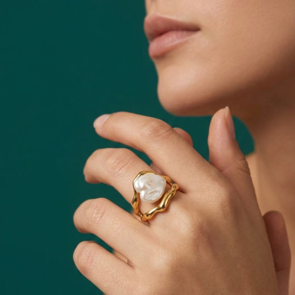 The contrast between the satin-finished gold and the high-shine pearl creates a balanced, harmonious look that transitions effortlessly from day to night. Resting on a slim, comfortable band, this piece is designed to represent the connection between two elements—making it a thoughtful gift or a symbolic addition to your personal collection.